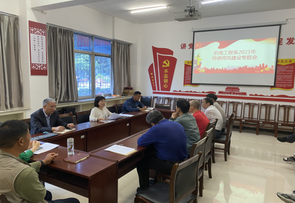 4月18日下午,机电工程系在系部会议室组织召开师德师专题工作会议,系主任冯凯主持会议,全体教职工参会。