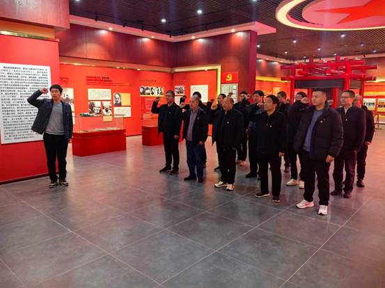 贾湖红馆是贾湖集团投资建成的以红色为主题的多功能党建馆,漯河市“百优”党性教育基地,融入多媒体互动形式,精彩展现我党光辉历程和革命前辈浴血奋战、前赴后继的不朽业绩。在贾湖红馆,师生党员聆听了讲解员的详细介绍,认真观看了珍贵的历史图片和实物展览,深入了解我党从建党以来不同历史时期的光辉历程奋斗业绩。参加活动的各位党员,在鲜红的党旗前重温入党誓词,大家紧握右拳进行庄严宣誓,发出“不忘初心、牢记使命的”铮铮誓言。