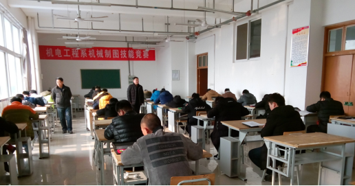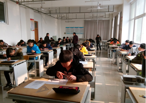 为激发学生学习的积极性,提高学生的绘图能力和识图能力,为参加全省技能大赛选拔优秀人才,2017年12月27日中午,在二号实训楼六楼绘图室举办了“机电工程系机械制图技能大赛”。此次竞赛共有33人参加,分别为17机电、数控和模具专业的学生。