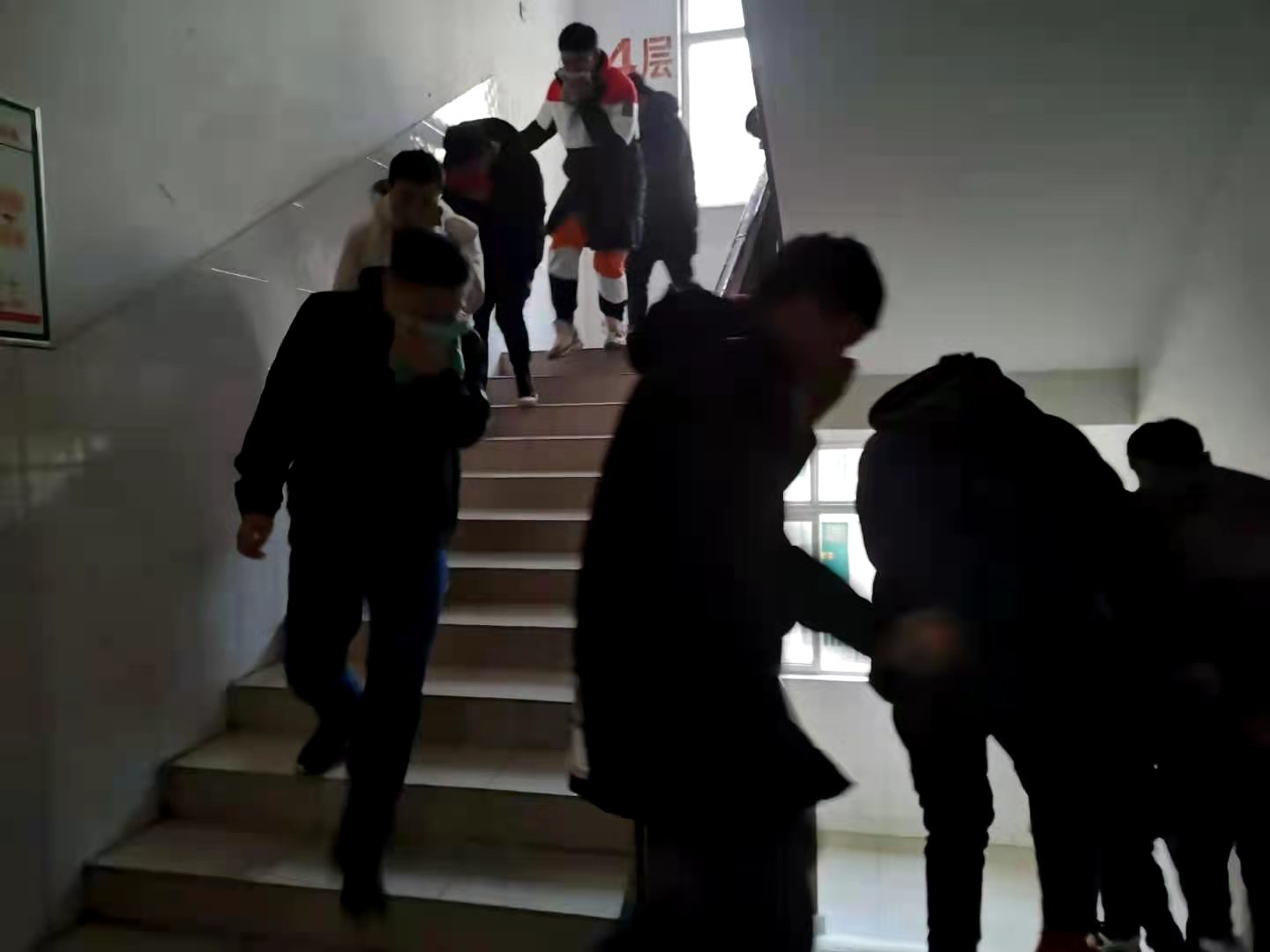 火灾警报拉响,各班同学在老师的引导下有序从发生“火情”的楼道中奔出,同学们在疏散过程中严格按照安全逃生要求,做好防护措施,用湿毛巾捂住口鼻,弯腰前行,按照楼层的逃生标识,迅速从各个楼层房间疏散到室外广场。从发出警报到全部安全撤离,整个演习用了不到3分钟,达到了预期效果。