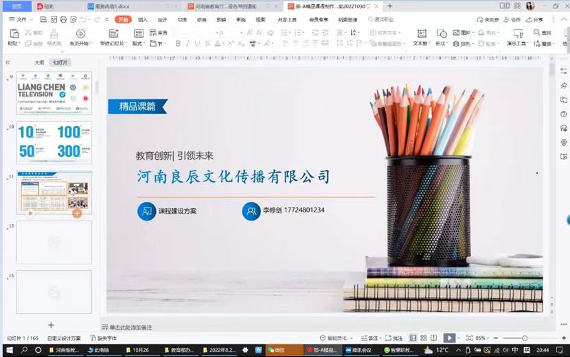 视频会上,苏总监带领大家学习了《河南省高校精品在线开放课程建设标准》,并就《2022年职业教育在线精品课程观测指标》做了深刻解读。随后就如何建设好一门课、课程建设展现形式、制作流程三个方面对老师们进行了培训,最后为课程组分享了几门课程案例。课程组老师就精品在线开放课程建设过程中的细节问题与苏总监进行了交流。