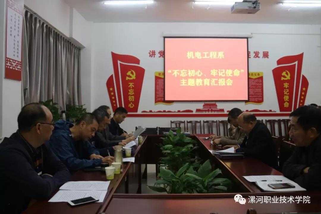 汪继顺在讲话时指出,今天到漯河职院实地考察调研,感到耳目一新,党员干部和教职工精神状态都很好,都在为党育人、为国育才,把教书育人具体工作与主题教育紧密结合。机电工程系办的很有特色,教师队伍素质在提高,学生都在努力成才,主题教育开展深入扎实。学校的根本任务就是立德树人,开展主题教育一定要与实际工作相结合,做到“两不误、两促进”。他指出,机电工程系在前一段的主题教育工作中下了功夫、动了真劲儿、见了实效,在传承红色基因上抓得很紧、很实,希望下一步要在广泛征求意见的基础上搞好调研,通过深入调研,找到解决问题的办法,促进工作扎实有效地开展。