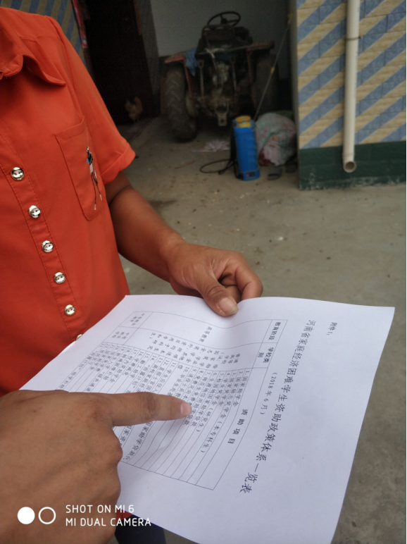为了便于宣传,我们将资助政策提前打印成册,要求资助委员回到毕业学校、当地村庄、街道等地方进行张贴或者直接宣讲。家住南阳市社旗县的王凡反馈说:“我们的工作真的太重要了,很多家庭不知道国家这么多助学政策,以前以为没钱上不起学就辍学,现在真是帮了他们大忙了,他们村就有一个大学新生听了他的宣传之后放心的去大学报到了”。他跟我讲的时候感觉非常有成就感。