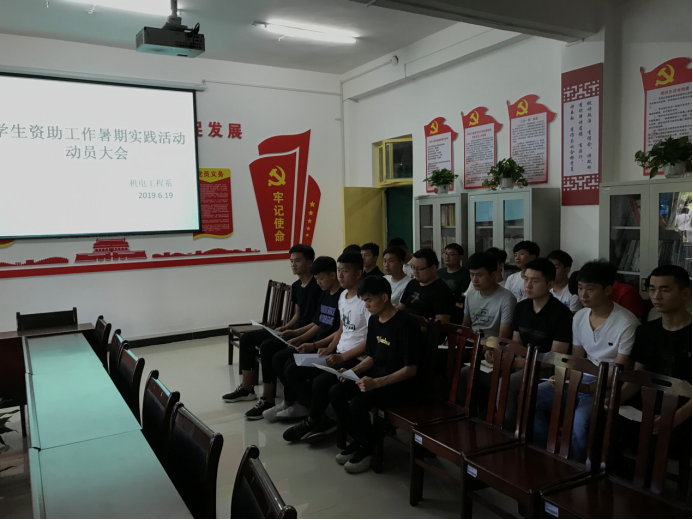 为深入宣传国家资助政策,解除家庭经济困难学生的后顾之忧,根据《2019年河南省学生资助宣传工作方案》精神,响应学校开展“送政策到家,助学子圆梦”学生资助工作暑期社会实践活动的决定。机电工程系领导班子非常重视此次活动,迅速召开会议布置相关任务,对各班资助委员进行国家相关资助政策的培训。保证暑期实践活动的顺利进行。