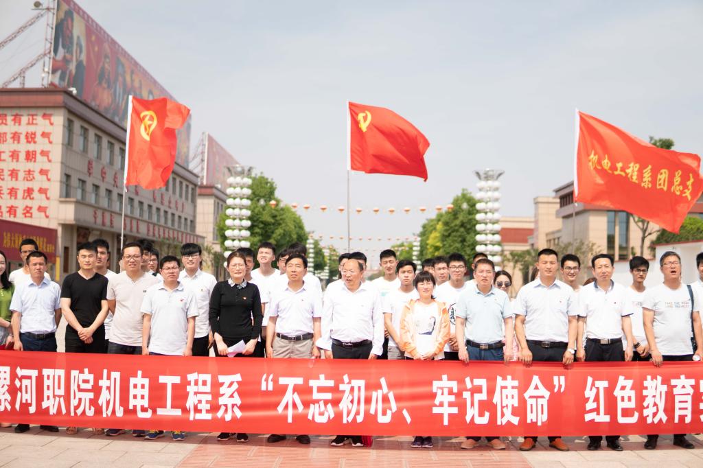 5月25日上午,漯河职业技术学院机电工程系联手思政部、学工部,组织党、团员和入党积极分子赴临颍县开展“不忘初心、牢记使命”红色教育实践活动。本次实践活动以唱红色歌曲、重温入党誓词、讲党课,创新思政课教学方式,深入推进“红色文化育人”学生工作品牌创建,充分利用漯河当地红色文化资源加强对师生的爱国主义、集体主义和革命英雄主义教育。小商桥抗金英雄杨再兴陵园、临颍县烈士陵园、南街村等多处纪念场馆和红色教育基地,都成为漯河职业技术学院大学生思想政治理论课的三尺讲台。