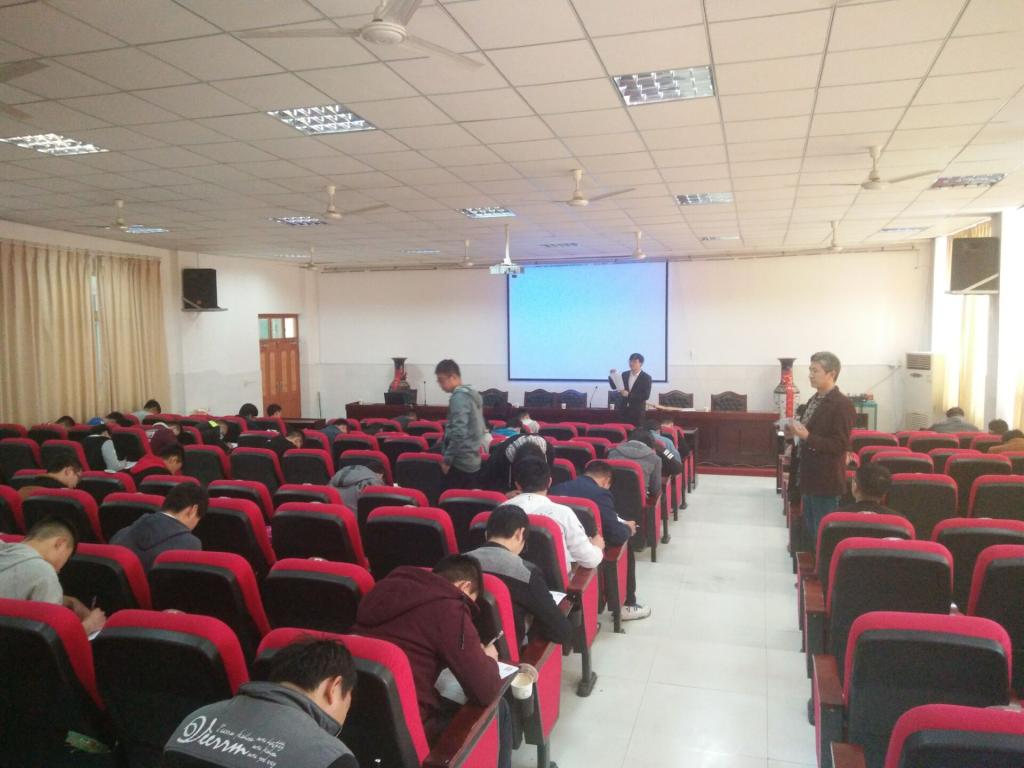 会议首先由富士康工作人员播放富士宣传影片及PPT,并对本次招聘活动进行了详细的讲解,随后进行了笔试及面试,最后选出40多位名同学进入初选名单。
