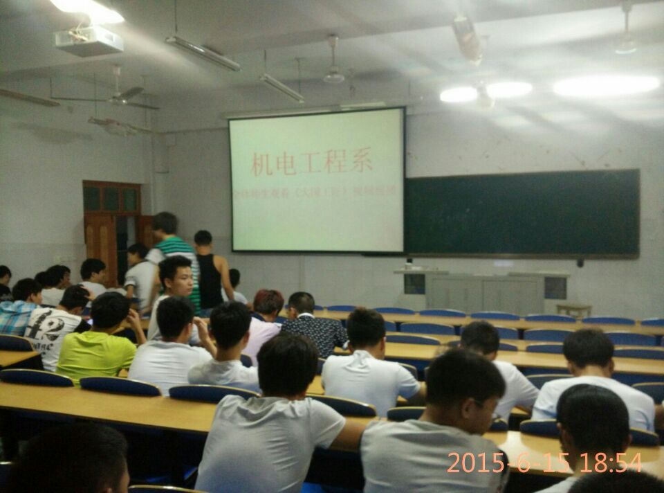 根据学院要求,2015年6月15日下午及晚自习期间,机电工程系组织全体师生分别在系会议室和教室观看了《大国工匠》视频活动。
